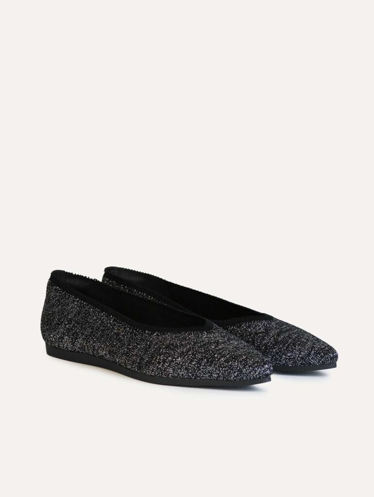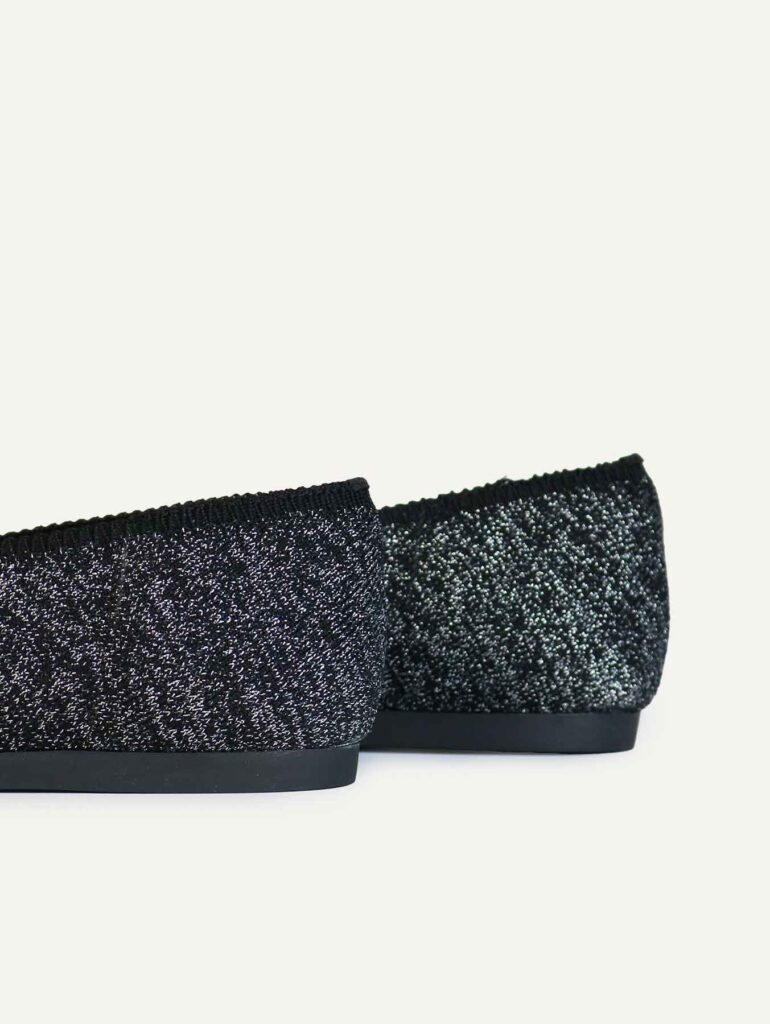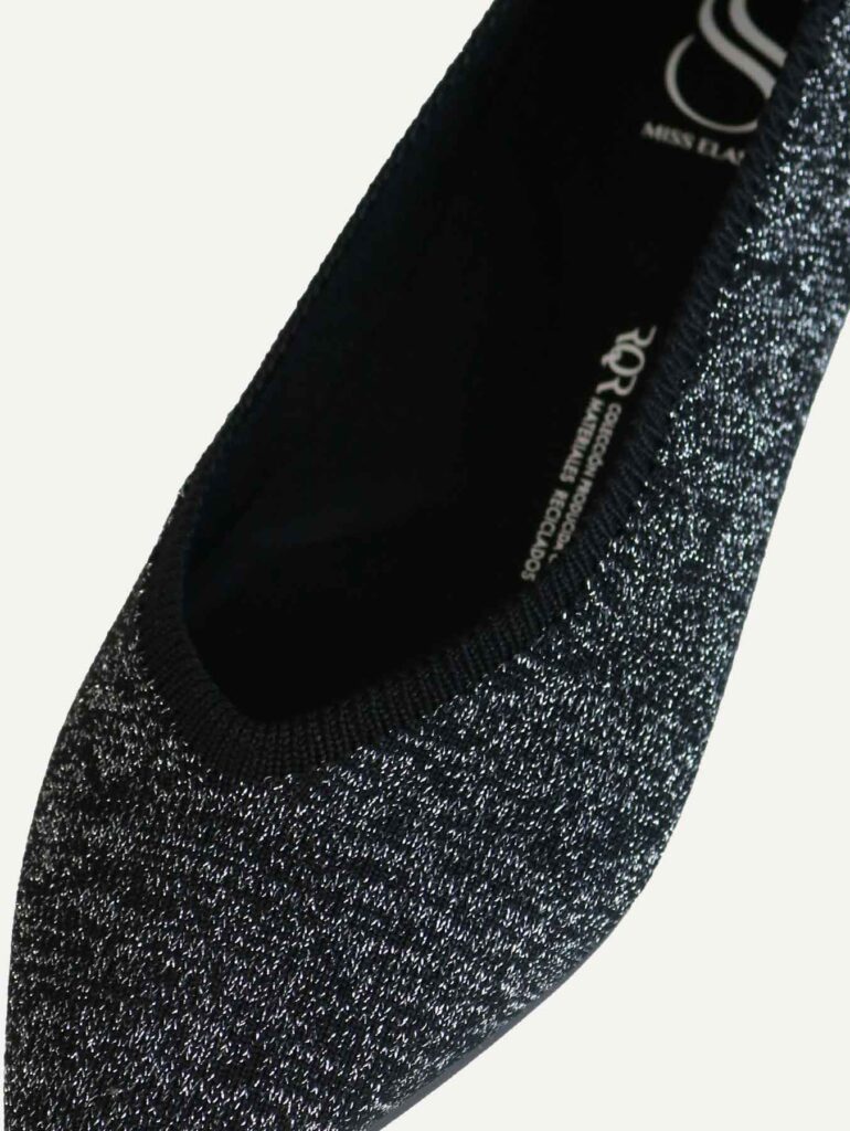 Bailarinas de tejido reciclado brillante negro y suela plana.