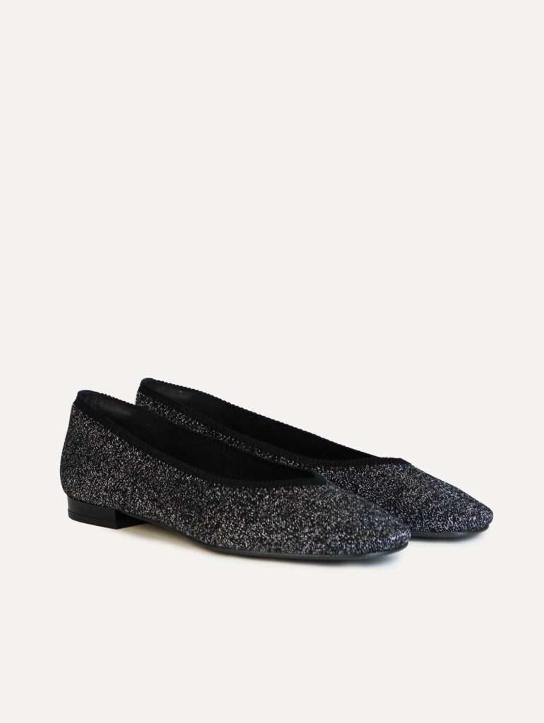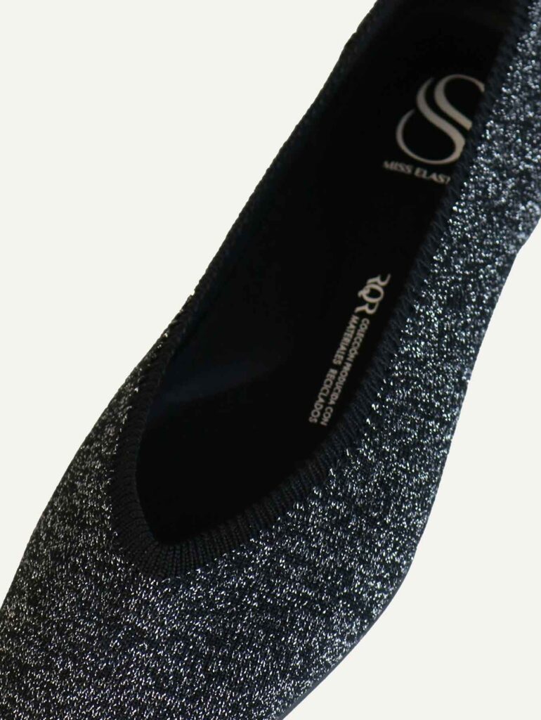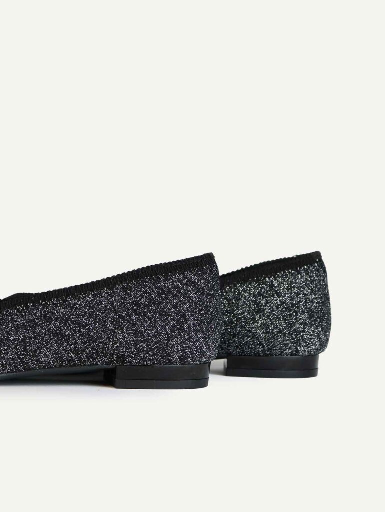 Bailarinas de tejido reciclado brillante negro y suela plana.