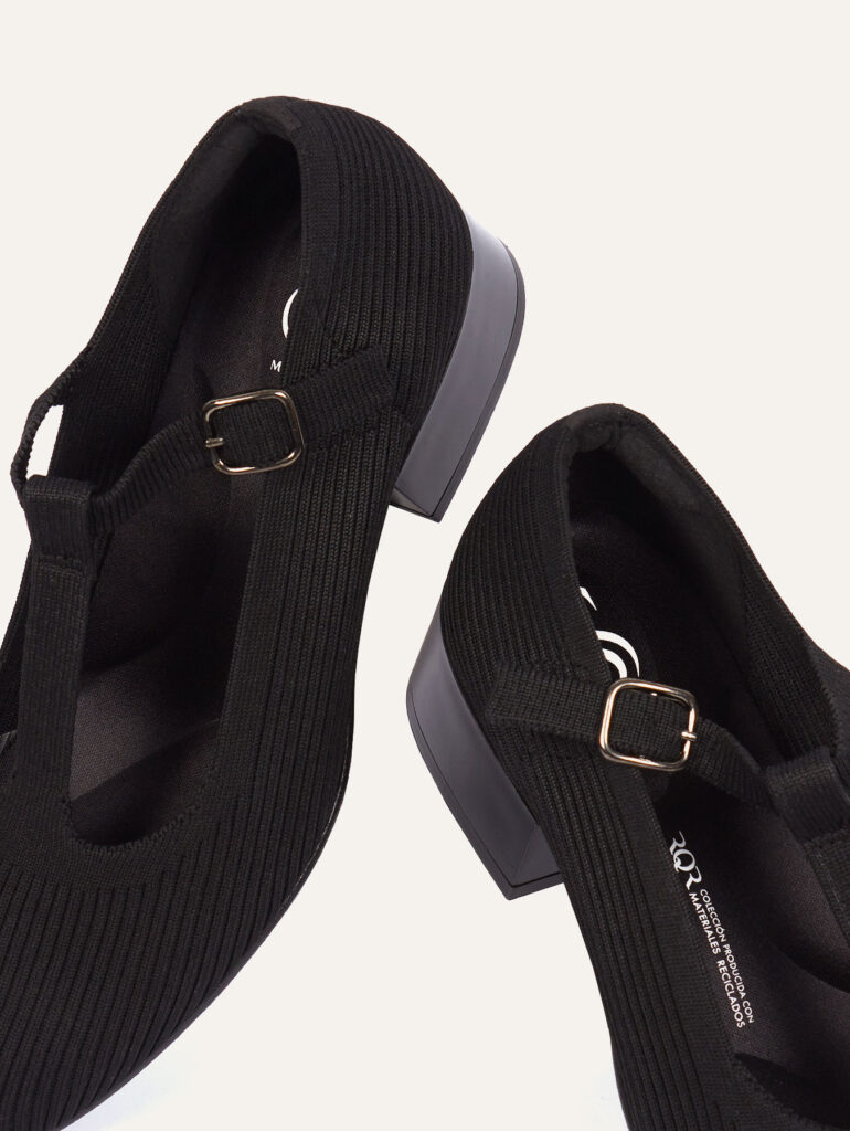 Mary Jane de tejido reciclado en color negro.