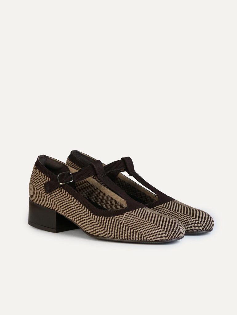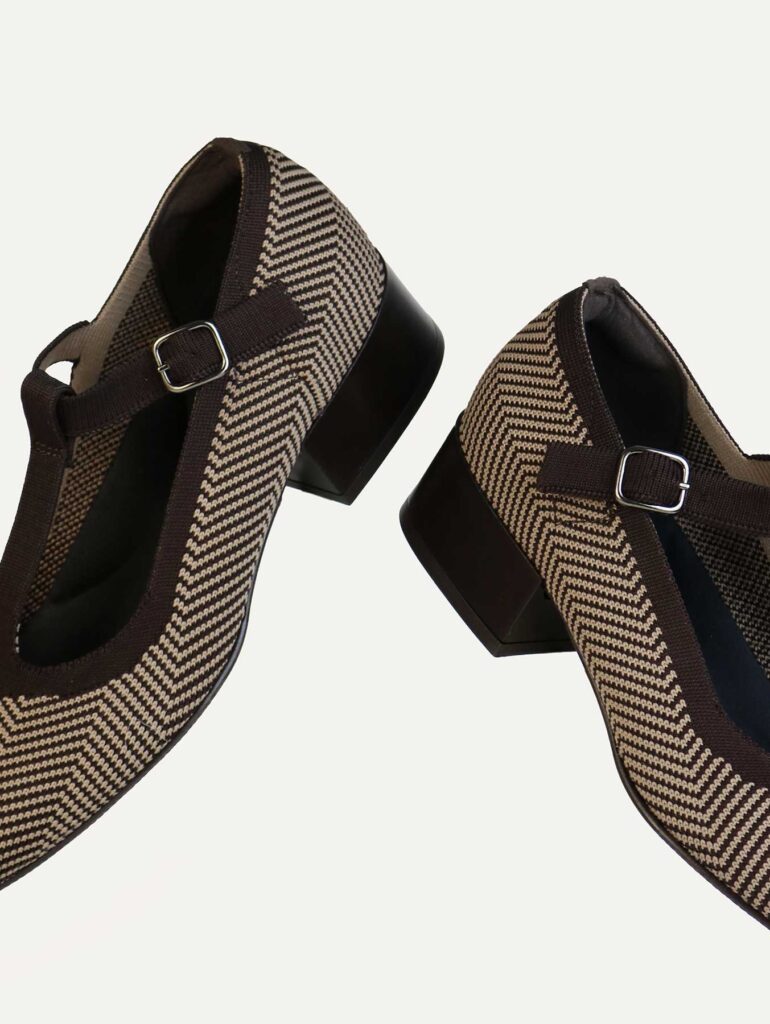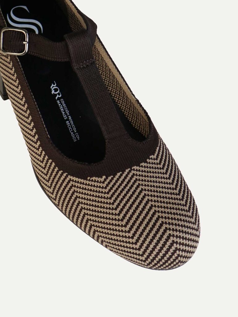 Mary Jane de tejido reciclado de geométrico en color marrón.