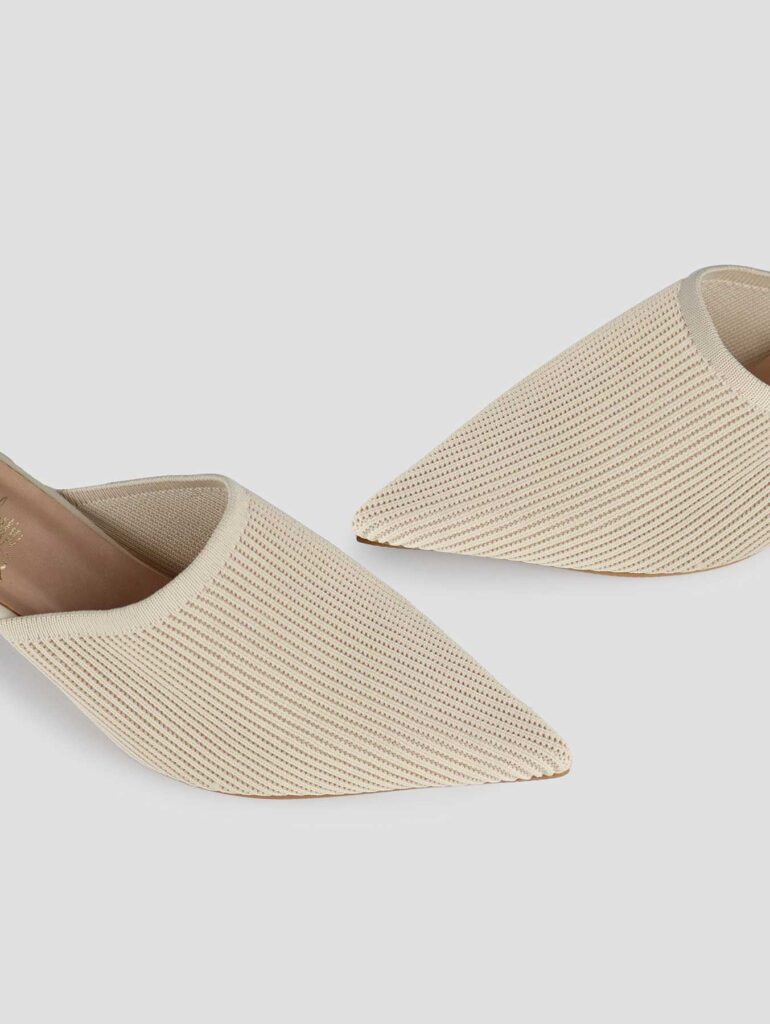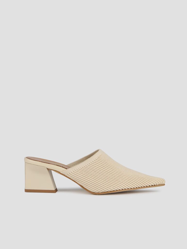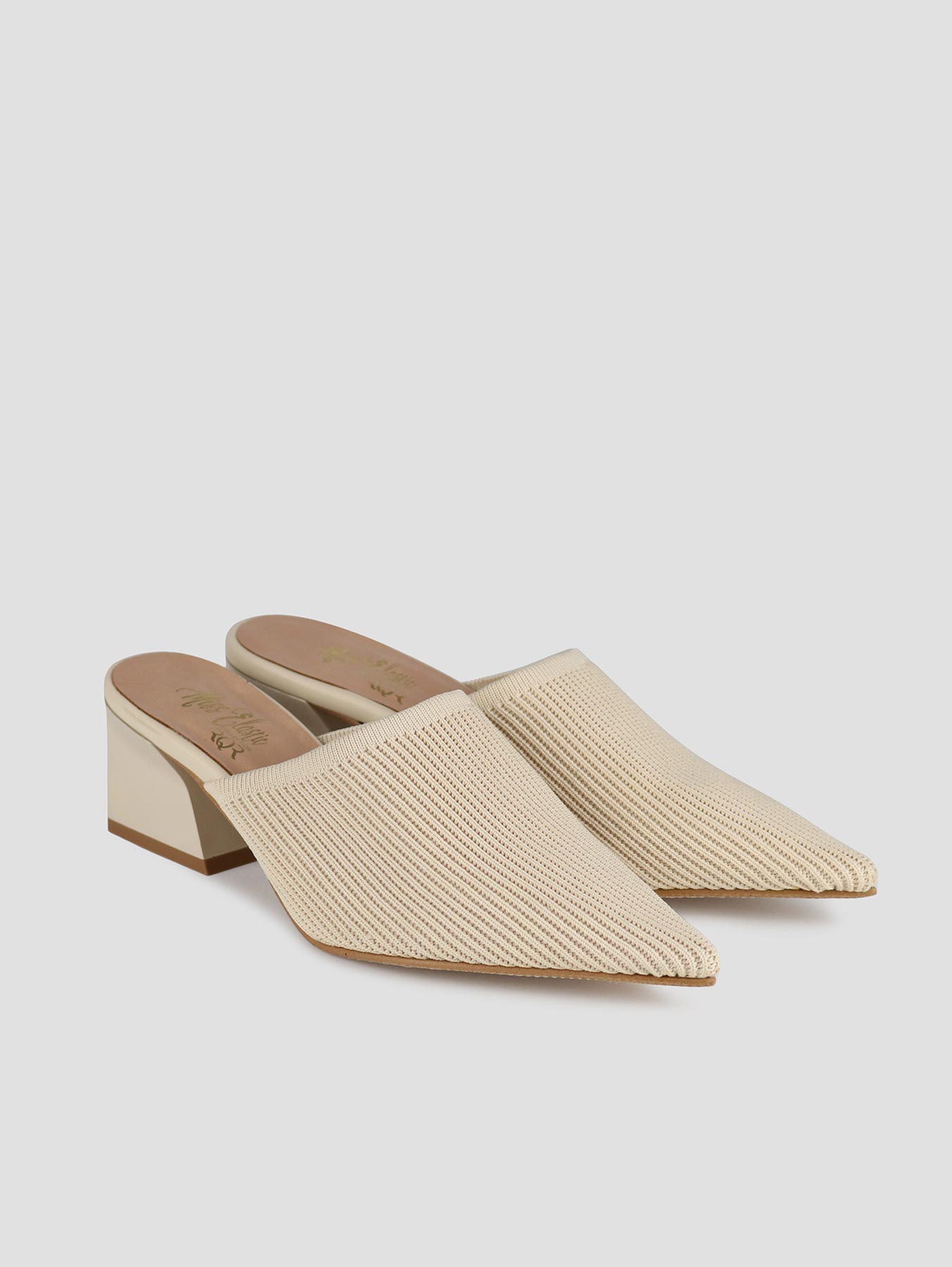 Zapato destalonado para Mujer estilo mule. Acabado en punta, tacón alto de 6 cm y tejido sostenible de color nude, estas mules de tacón combinan tendencia y comodidad. Fabricado en tejido ECO-elástico ajustable con tecnología “Adaptative Style” sin componentes de origen animal. Comodidad absoluta para tus pies. Fabricado en España. Este modelo calza un número menos de lo habitual. Recomendamos pedir una talla más de la que sueles usar.